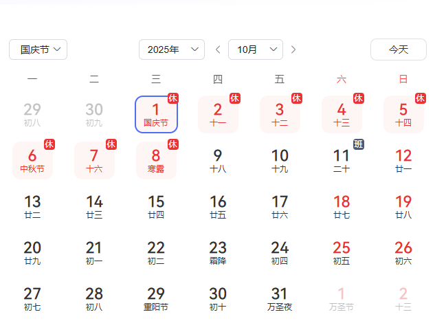 我司参照国家规定,对2025年国庆节和中秋节放假安排,通知如下: